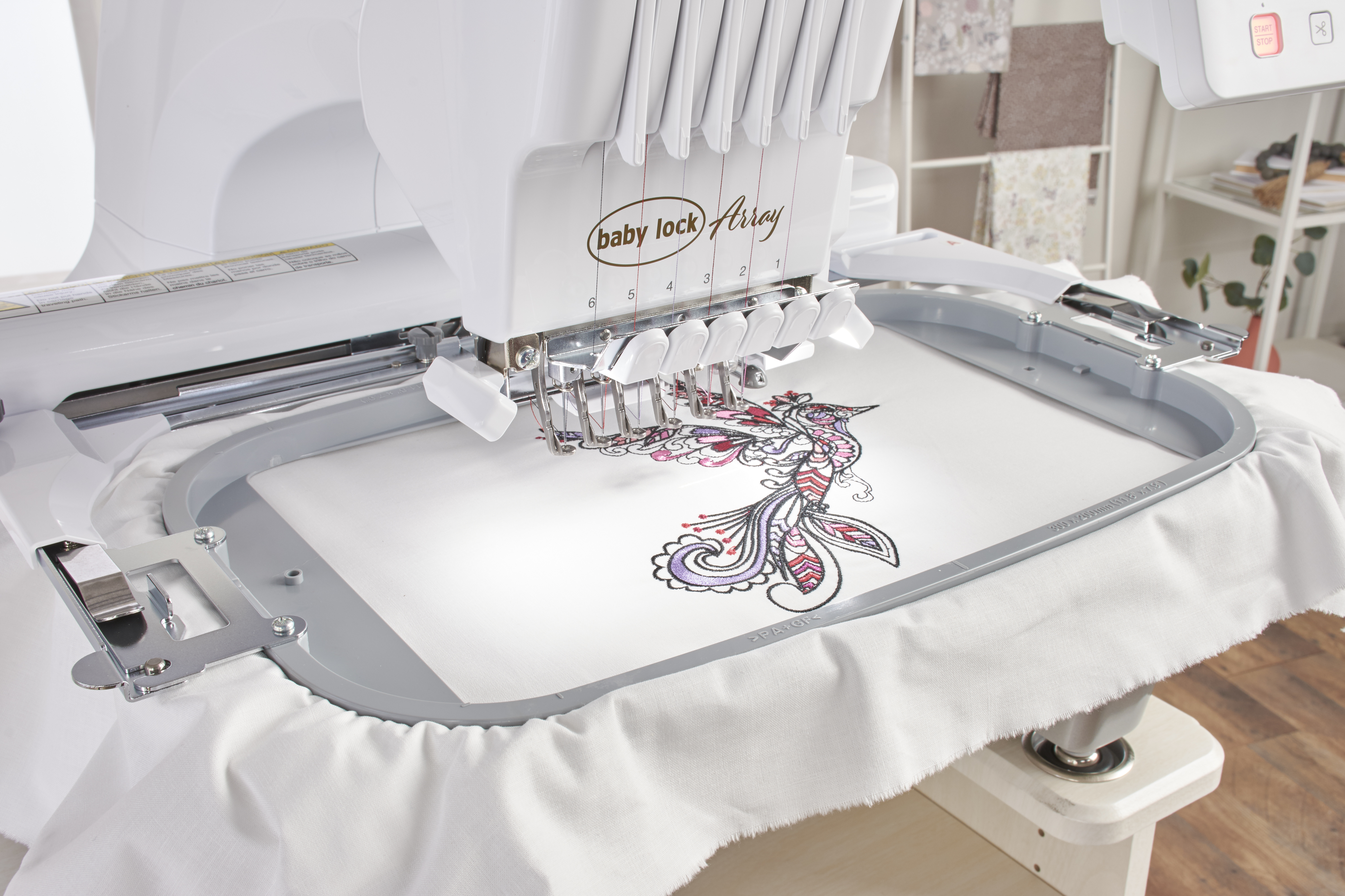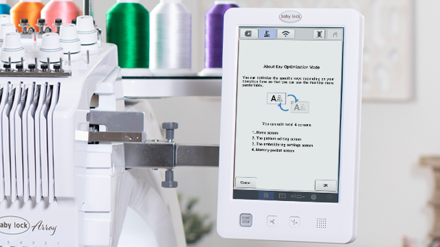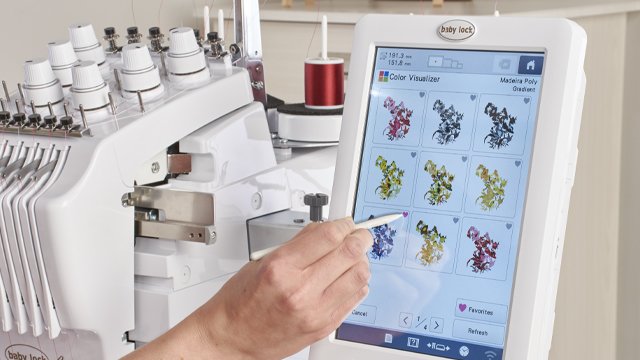 Harness your fearless creativity with the Baby Lock Array multi-needle embroidery machine. Use a brilliant high definition touchscreen as the control center for all of your embroidery masterpieces. Make quick changes to designs and start embroidering right away.